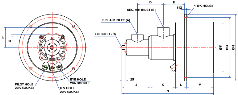 - 燃料容量范围在42000-682000卡l/小时的 油燃料和20%的过剩空气。